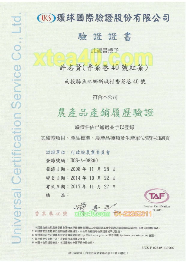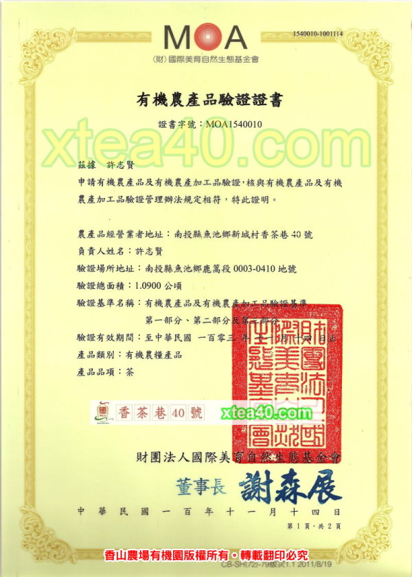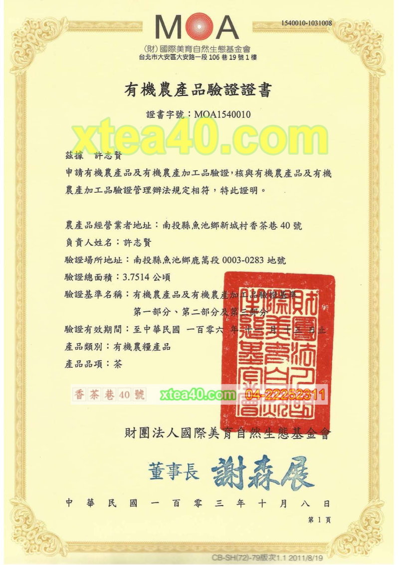 唯一榮獲【生產履歷】、【國際有機認證】雙認證紅茶有機紅茶【香茶巷40號】,MOA有機認證商品,SGS檢驗318項農藥未檢出,里仁有機店有售,業界唯一茶廠、茶青、茶乾都是通過有機認證的好茶喔!http://www.xtea40.com/
